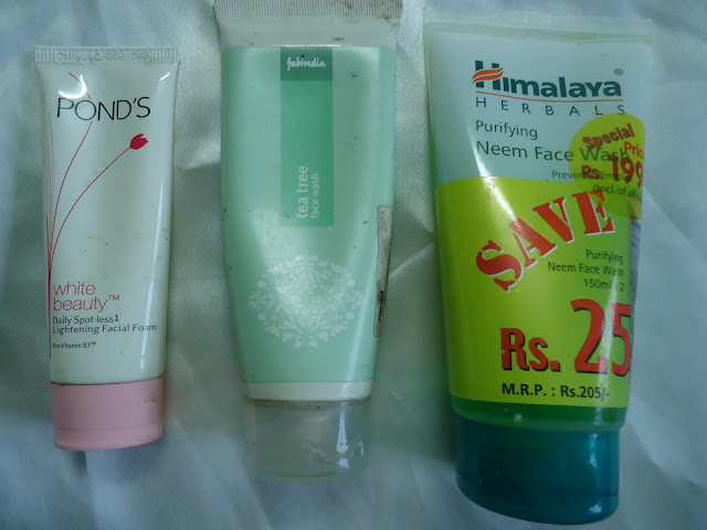 Ok..here is a quick comparision of the face washes I have tried. Precisely its Himalaya Purifying Neem Face wash (which I am using from last 4-5 years and yes you are right…this is my HG), Pond’s White Beauty Daily Spotless Lightening Facial Foam and Fabindia Tea Tree Face wash.