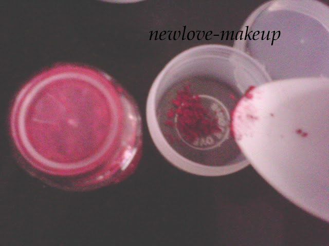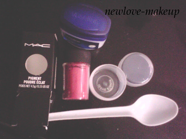 I took a little pigment in the container, heated the Vaseline a bit and added it to the container…mixed them well and let it cool down…
