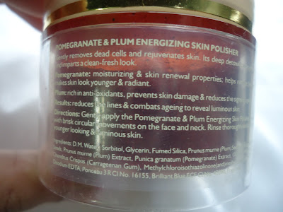 Its the energising one and meant for all skin types. Others are Kiwi and Grapes Revitalising Skin Polisher which is meant for sensitive skin and Orange Peel and Alpine Salt Whitening skin polisher meant for oily to combination skin.