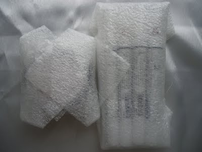 The products were packed in bubble wrap and inside an bubbled envelope but since there was no box..the upper plastic of the cream blush separated..