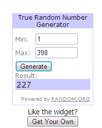 Sorry guys I got a little late in announcing the winner..actually in compiling the entries..got 398 total entries..phew..