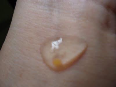 Its a transparent gel…a little runny with small blue and brown mili capsules…small beads type in it…has a nice refreshing pleasant smell. It does not dry out or stretch skin and cleanses well..this would suit all skin types.