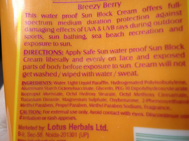 Its called the Berry Breeze Cream coz its pink and has berry extracts in Ingredients and also has that berry smell..its PA+ and has UVA and UVB barriers too alongwith SPF 20. It claims to be sweat proof and water resistant and suitable for all skin types. Its a thick pink colored cream and does get absorbed into the skin.