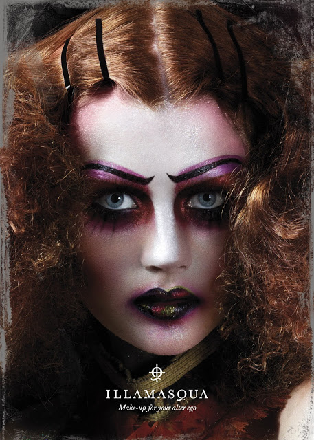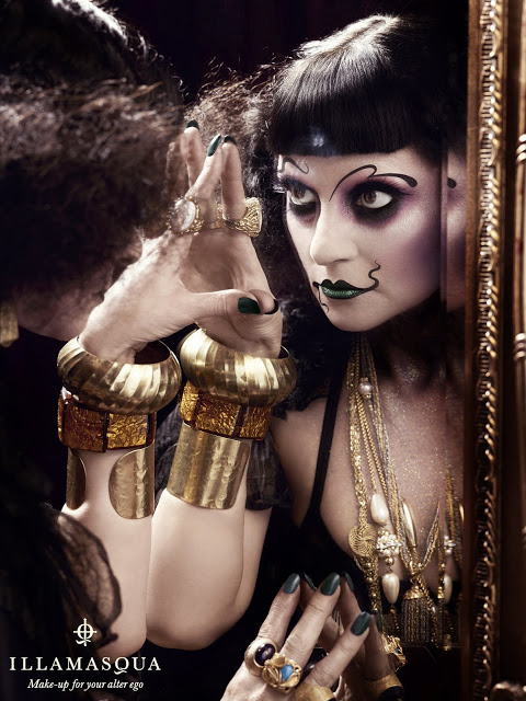 “Theatre Of The Nameless is a heady mixture of opulent hues, decadent pigments and fearless application. A bruised and burnished pallet that gives a sensual slip that bleeds colour into colour, worn through and kissed off “ Alex Box, Illamasqua Creative Director