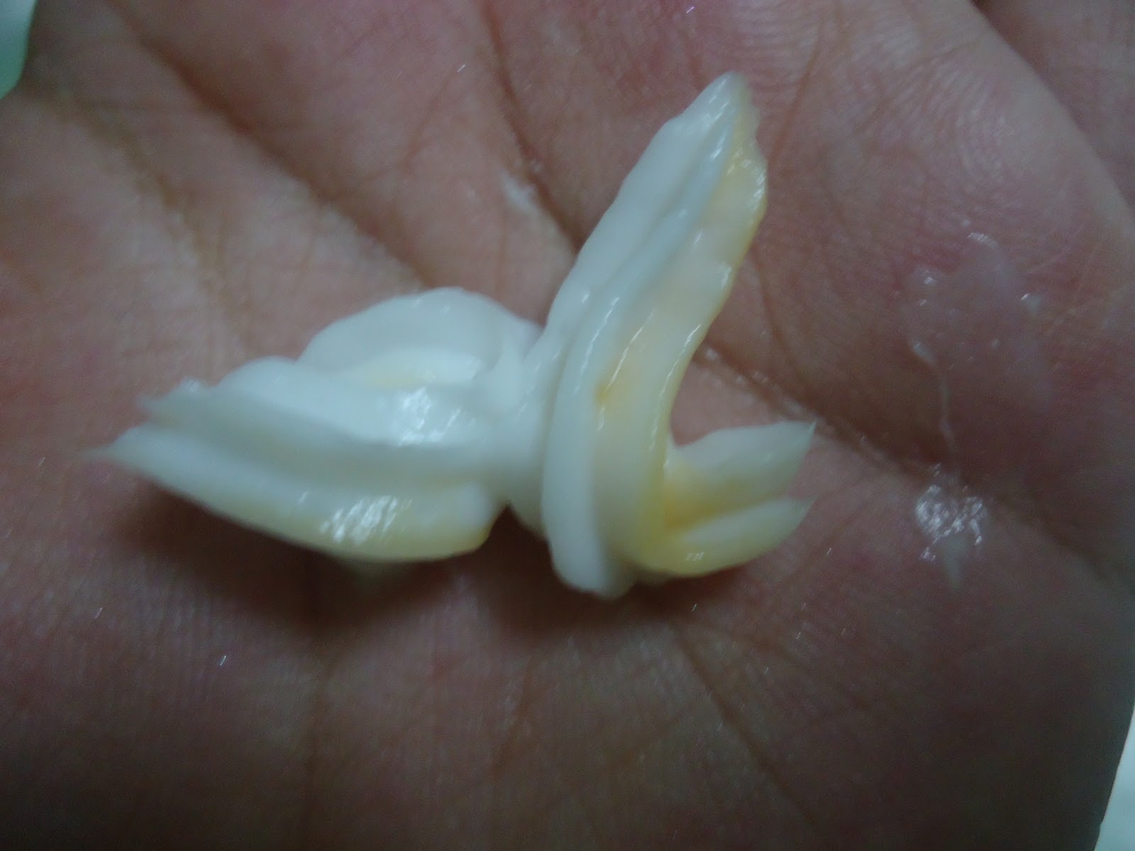 Its a yellow colored shampoo of normal consistency..and has those sparkling shimmers..has that trademark Dove smell. It lathers well and cleanses well in one wash. Does not make my hair feel dry at all.