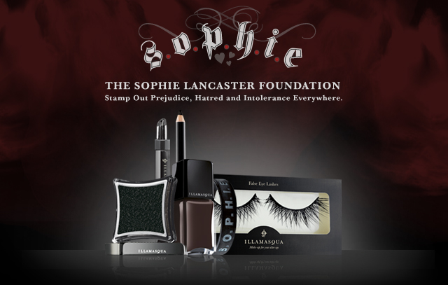 In honour of Sophie’s birthday and to mark our support for the Sophie Lancaster Foundation, we are hosting an internationally open competition to win a selection of cult pieces from the Illamasqua collection, including Medium Pencil in Sophie, Pure Pigment in Zeitgeist, Nail Varnish in Unnatural, Intense Lipgloss in Repulse, False Eye Lashes in no.21 and a S.O.P.H.I.E wristband.
