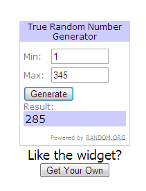 I got 345 entries in total..and using random.org I got..285