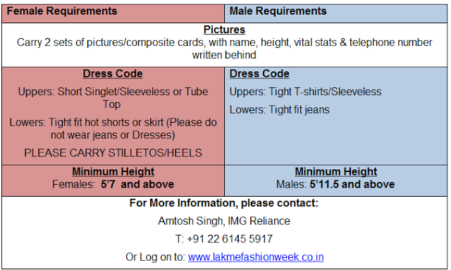 If you think you have what it takes to be an LFW model, come join us at the auditions for Male and Female models on January 23rd, 2012 at Grand Hyatt Mumbai.