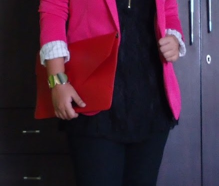 OOTD: Hot Pink Blazer and Black Lace Tunic