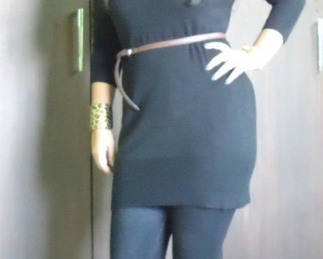 Ok..so actually this was supposed to be a black knit dress..but its a little short to wear here..so I prefer wearing leggings with it..
