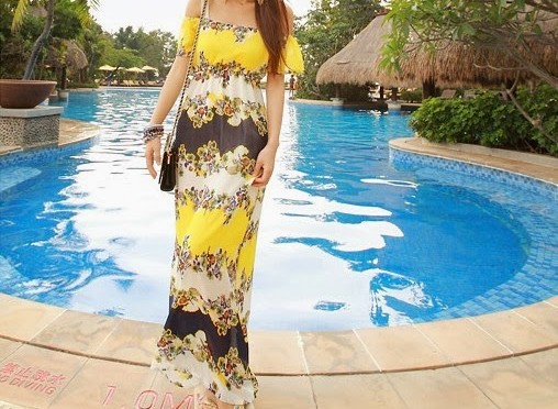 1. Off Shoulder Printed Maxi Dress