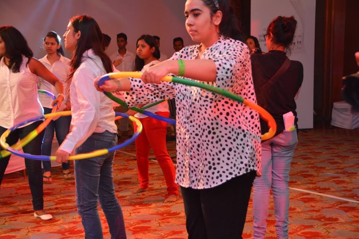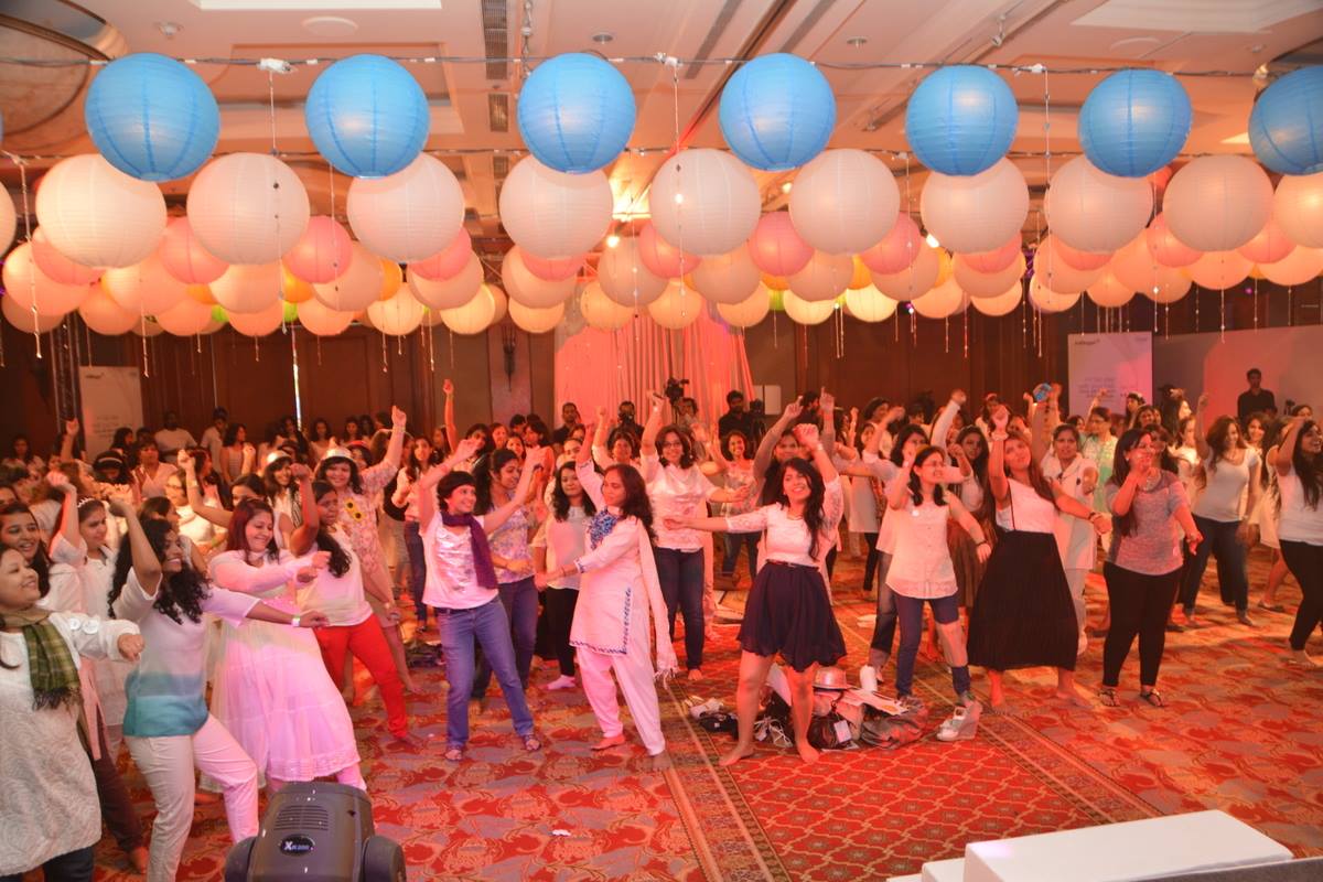 First of, there were around 150+ girls all dressed in white..and we were divided into 10-11 teams. I was in Team 4. We all decided our team names first..we went with the name ‘Curls’. Not all of us knew everyone in the team too. So, there was this fun activity where half of the girls stand inside and half outside and make a circle facing each other..and turn in clockwise and anti-clockwise direction whenever the music starts and stop at whichever places they are facing their partners when the music stops. We were made to introduce each other, dance, do the bird dance, do a funny handshake, give each other a compliment, act a smiley we were given, etc..this helped all of us know each and every member of our team! Fabulous idea!