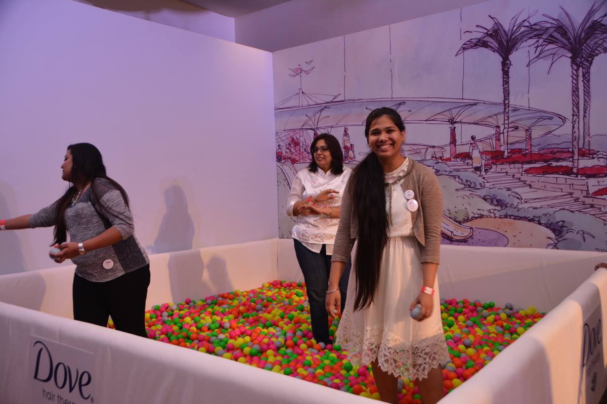 We were divided into 5-5 each for Have a Ball..where there was this huge inflatable bouncer filled with different colored pit balls. 3 people would be going in and finding out the White Dove balls..and 2 people would be standing out holding the buckets to catch those white balls. And the next team of 5 people does it. We collectively managed 175 balls.