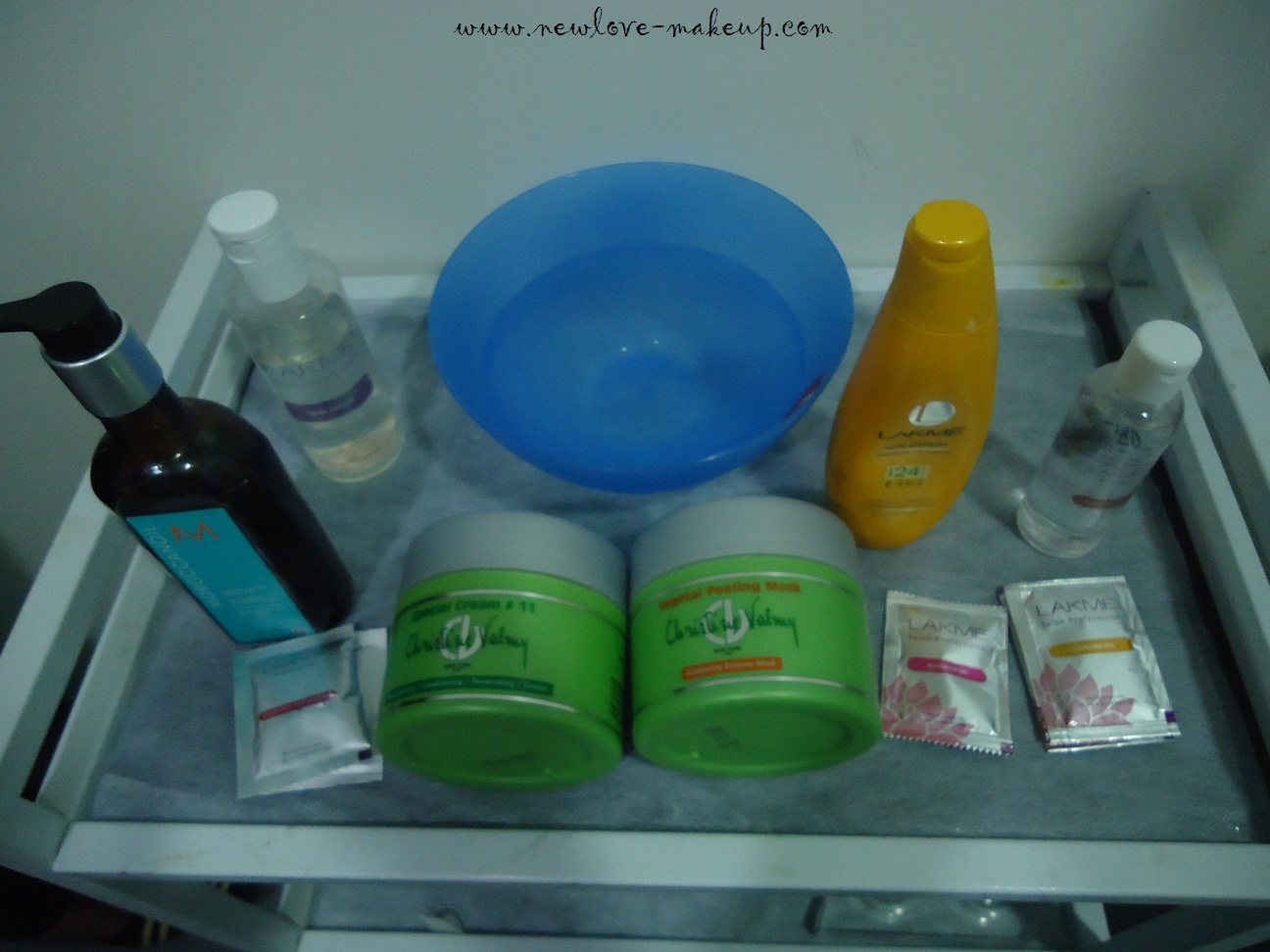 • Gel cleanser (Lakme Professional Cleansing Gel) followed by an enzymatic based scrub for exfoliation (They use Christine Valmy Vegetal Peel– Bromelin, Papaya, Pineapple)