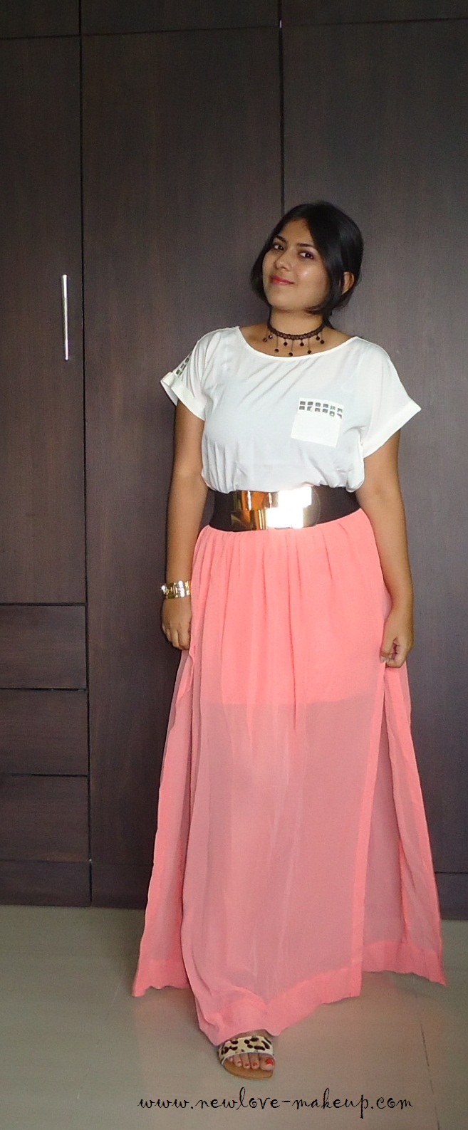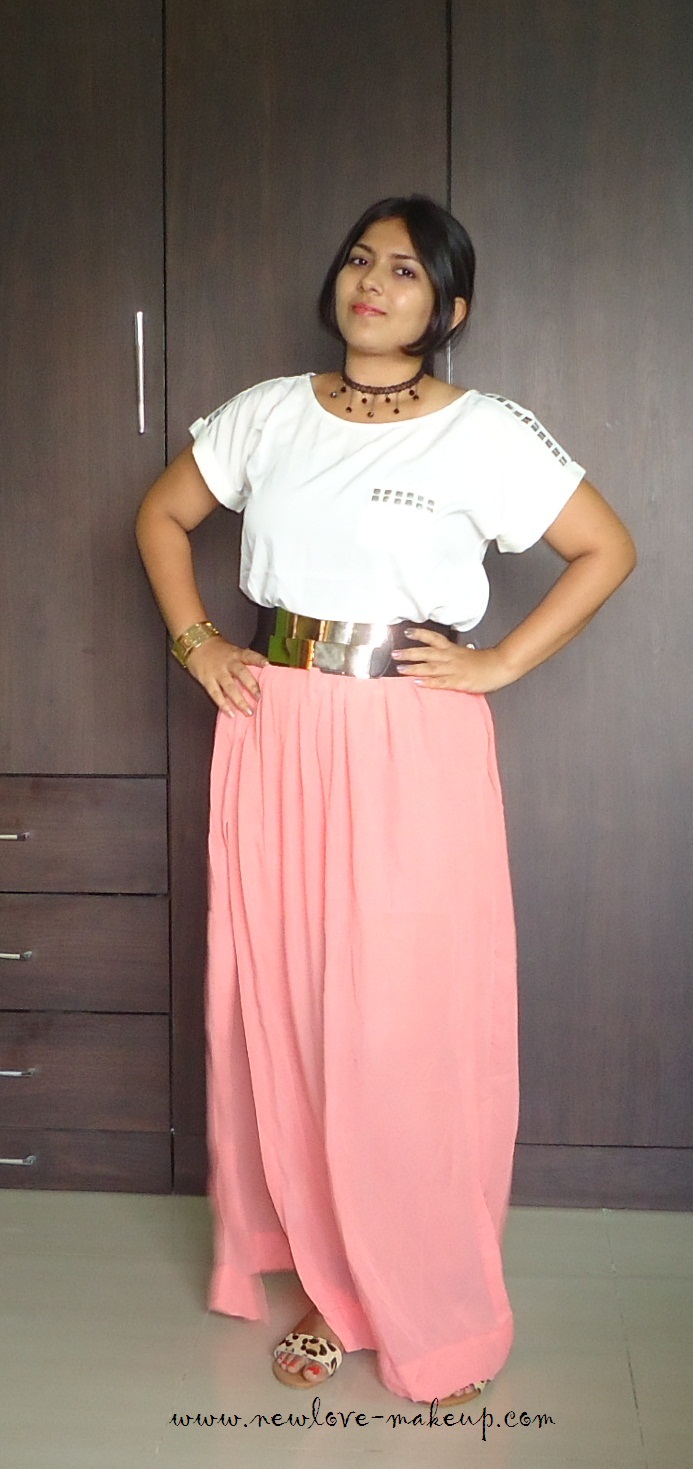 OOTD: Studded White Top, Coral Slit Maxi Skirt