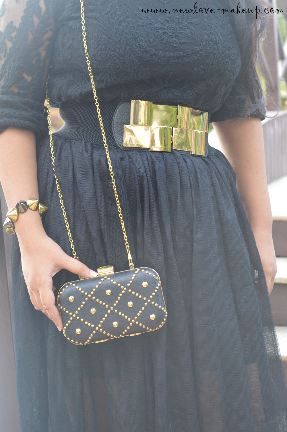 Anyhoo, I paired this outfit with my new n*de strappy heels from Zara (Love them!) and a black and gold studded clutch. A gold metallic statement necklace and a gold and black spike bracelet completed the whole look.