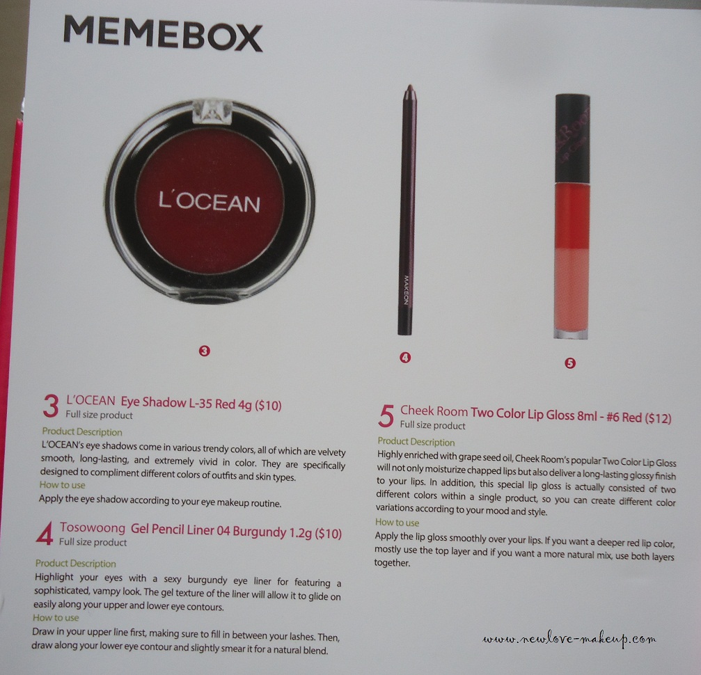 About the Red Colour Box: Hey foxy ladies! Dare to step out of your comfort zone with our Memebox Red and vamp up your style with a dramatic, rosy red look? Add vibrance and vividness to your eyes and lips with a bold red hue, slip on those stiletto heels, and be that femme fatale that we all know you are.
