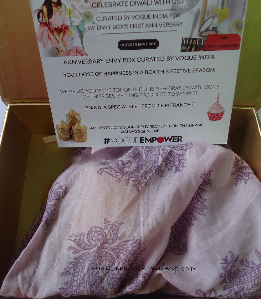 So My Envy Box completed one year and we have an anniversary box this month. Its curated by Vogue India in association with their Vogue Empower project.