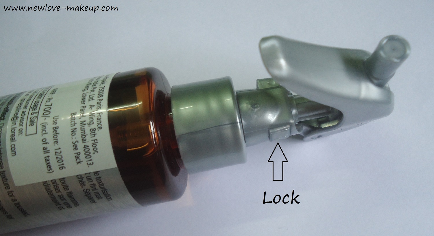 It comes in a sleek,plastic bottle with the most innovative cap which has a lock button, so untill you press the lock button to one side, it won’t spray. This makes it quite convenient and would avoid wastage/spillage during travel,etc too. Smells really nice.