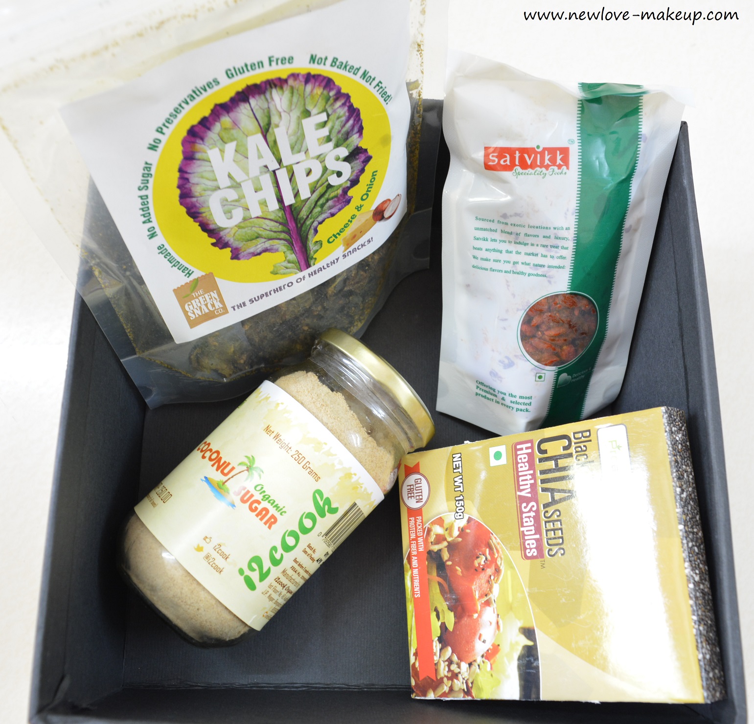 Dried Goji Berries make a nice snack, something to munch on, in between and also a good addition to granola bars or parfait or the likes. Black Chia seeds are very, very healthy and perfect to top on so many dishes. You get all your iron and calcium content here.