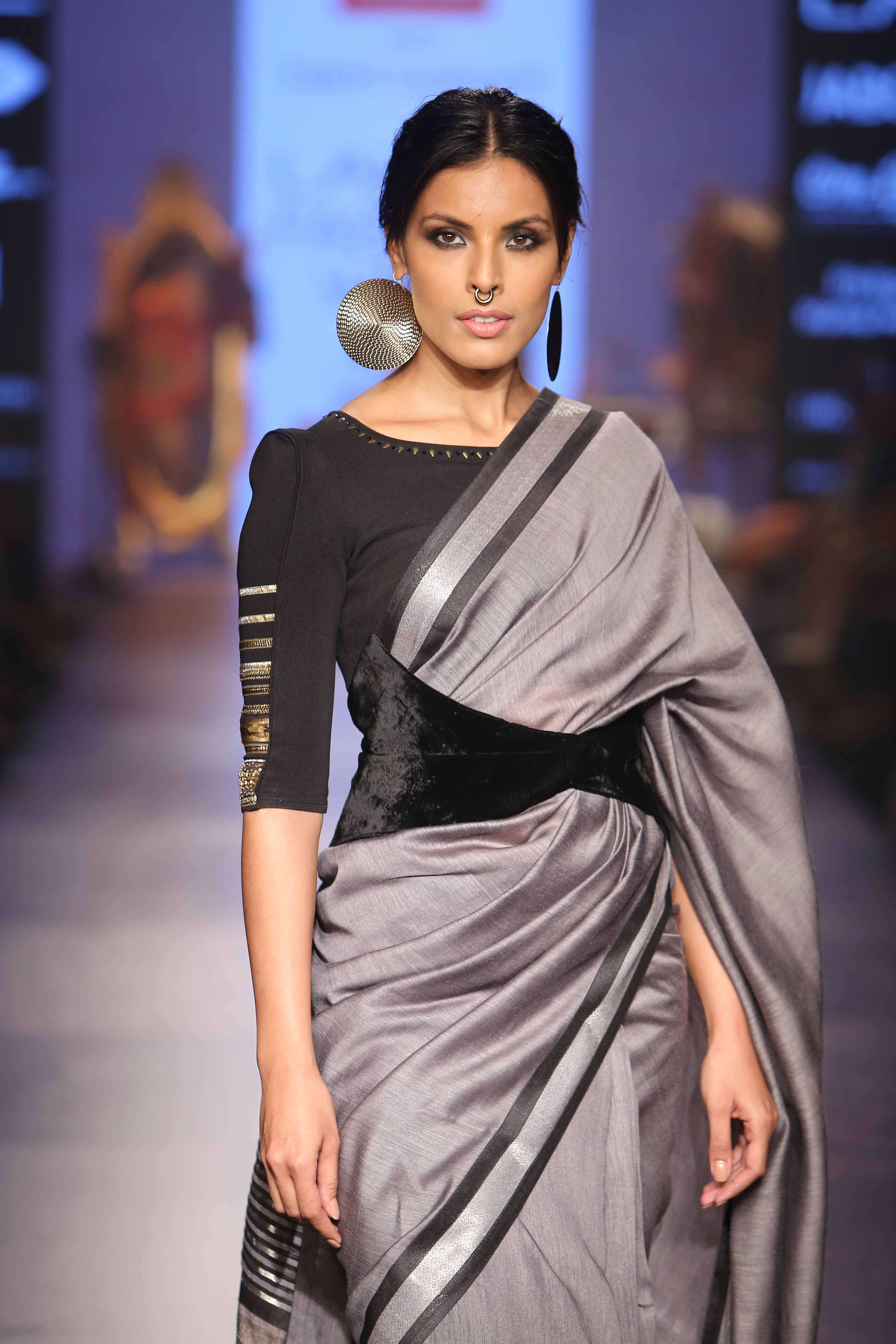 Dolman sleeve top, poncho draped skirt, corset dress, lungi dress and many such interesting silhouettes were seen on the ramp.