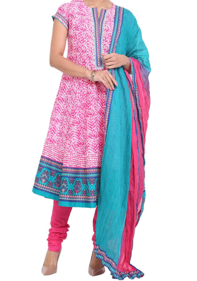 These are the most simple and basic kinds, which you can wear to work or a light function. Comfortable yet traditional and very light. There are many options of anarkali suits online by BIBA and on Myntra, Jabong, etc.