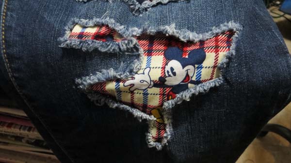Everyone is loves to have ripped denims, but now it's time to fill the ripped parts not with denim but a wide range of fabric. Fill this ripped areas with designs, patterns, fabrics or any other idea of your choice. If you do not have a ripped jeans then just take scissors to rip them off. Later, take the fabric that you want to attach with the denim and stitch it up.