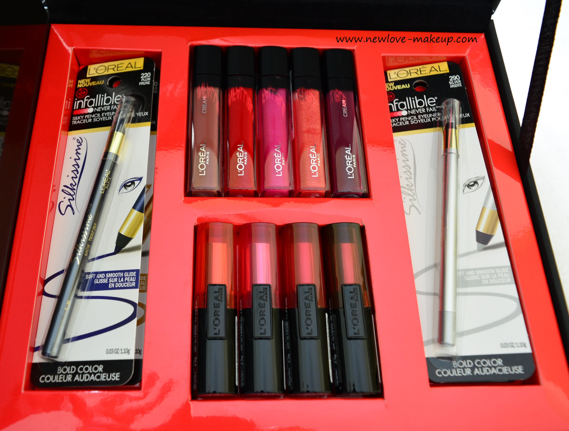 I got this kit which has lipsticks, lip glosses and eye liners. I will be reviewing the eyeliners next, and the lipsticks are already reviewed on the blog.