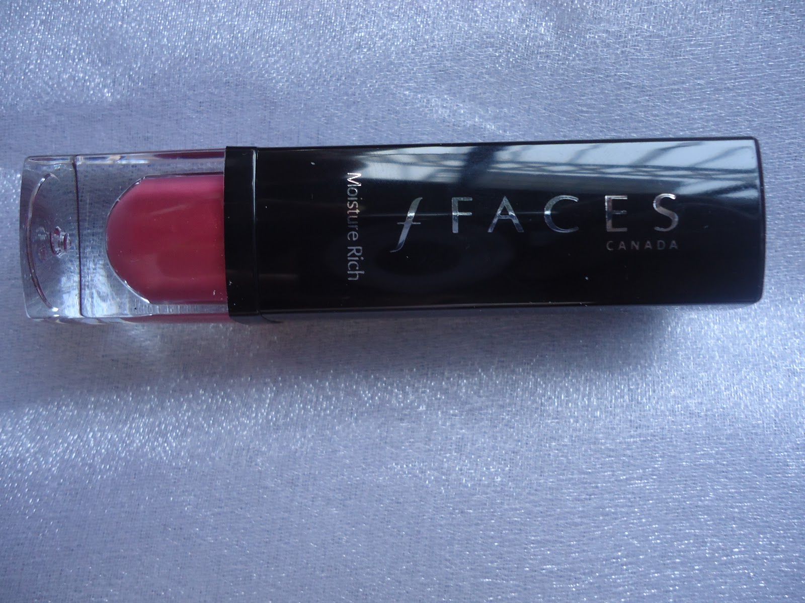 What the Company claims: Faces Moisture Rich lipstick provides rich, opaque color to lips and keeps them soft at the same time. The formula is infused with Vitamin E to protect and moisturize the lips with every application.