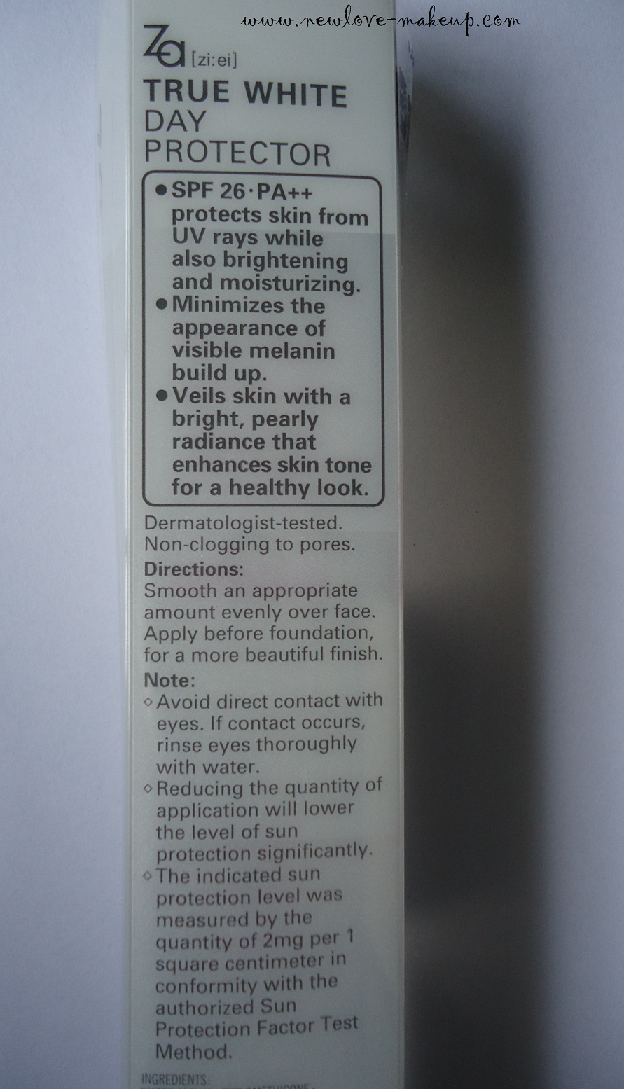 What the Company claims: Provides comfortable, light-weight yet strong protection against UV rays at daily base. Helps diminish spots and acne marks at the same time. Minimizes the appearance of visible melanin accumulation. Veils skin with a bright, pearly radiance that enhances skin tone for a healthy look.