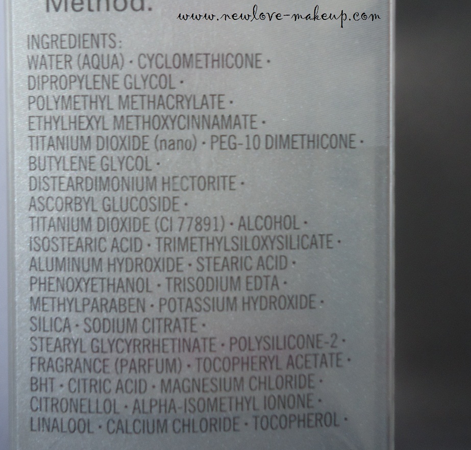 Exclusively formulated with: Vitamin B3, antioxidant Vitamins C and E and Aloe Vera, Sunflower seed oil, Spilanthes Acmella Flower Extract, Macadamia nut oil, Olive oil, Sesame seed oil