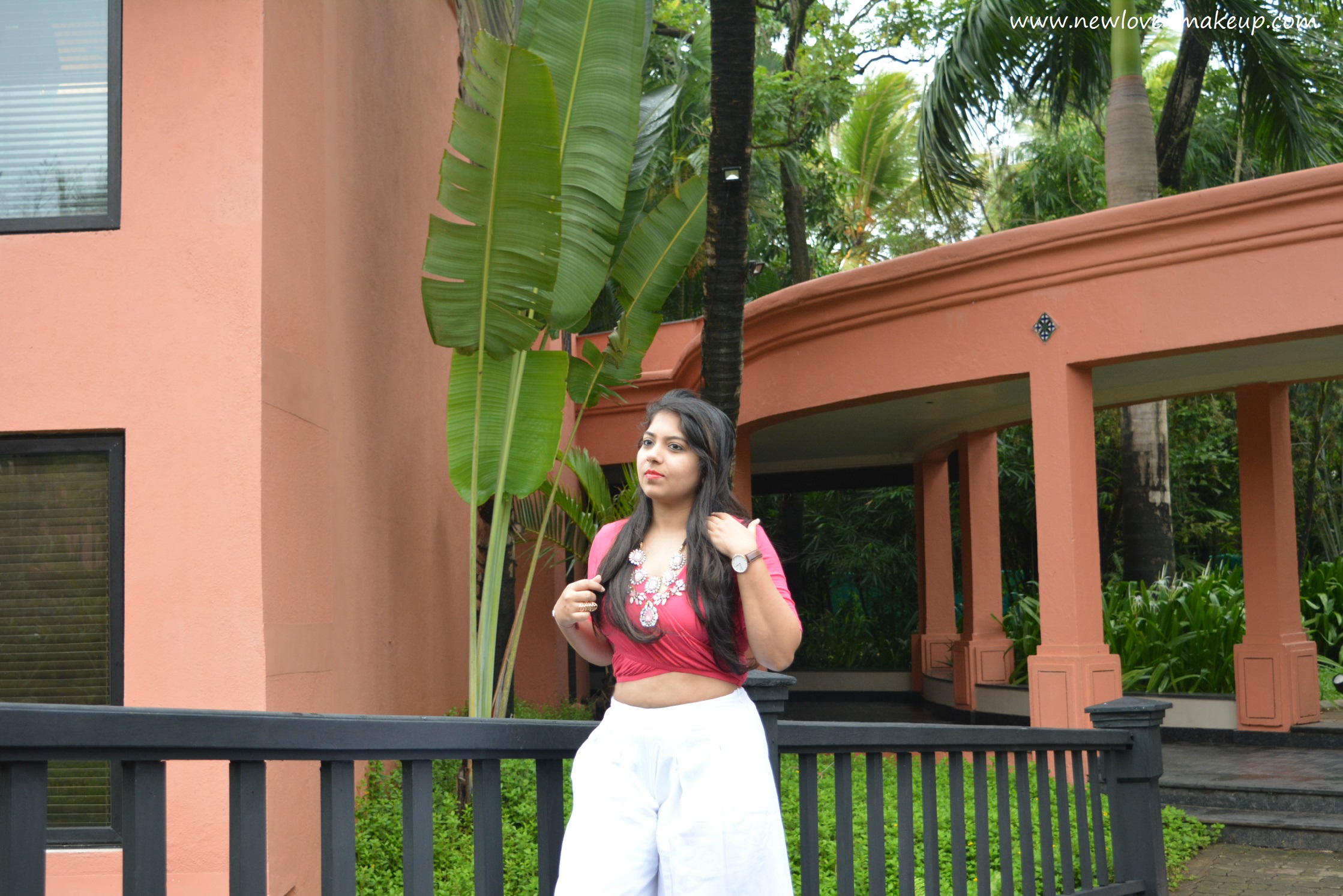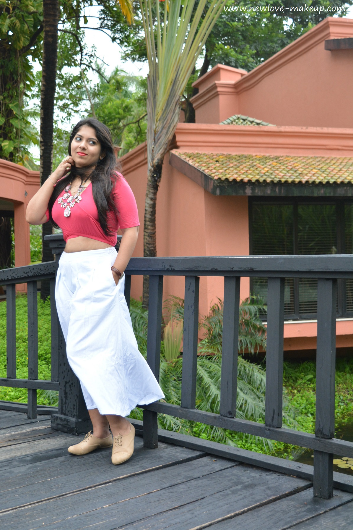 This time it is a pair of white culottes and I went with a crop top. I love how the coral red crop top works with the white culottes. I was not too pleased with the fit of the culottes, but as the size increases so does the length and since I am short, it somehow clashes :/ I accessorized with a nice, chunky statement neck piece and let that be the showstopper of the outfit.