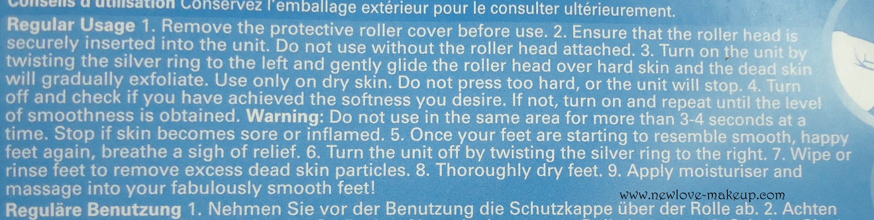 Move the unit in regular passes over the dry, dead skin, applying light to medium pressure. Continue with regular passes until the dead skin is removed and your feet feel silky soft. Stop if the skin becomes sore or inflamed.