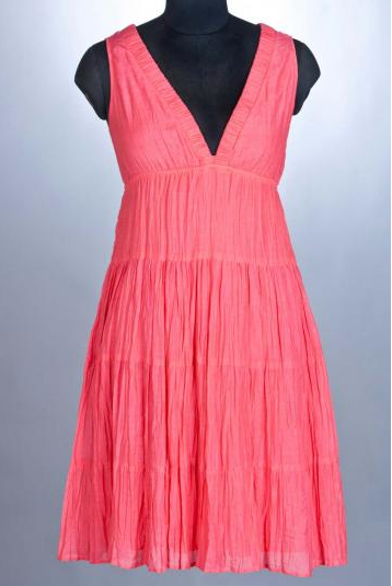 I got this knee length Coral Crinkled Dress with a deep V neck and elasticated waist..