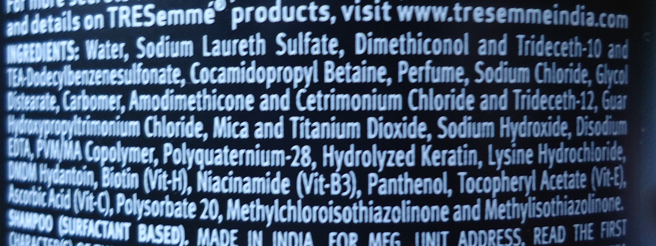 What the Company claims:  This innovative range is inspired from salon treatments that “reconstruct”and “repair” hair that has been exposed to styling and in the process,weakened and damaged. The Advanced IONIC Complex in this new range nourishes the hair and forms a protective shield, allowing it to withstand the potential damage due to heat styling tools and frequent brushing, while also reinforcing hair’s natural strength. Gentle enough for daily use, TRESemméIonic Strength ensures your hair is strong and beautifully soft making it manageable, like you have just stepped out of a salon.