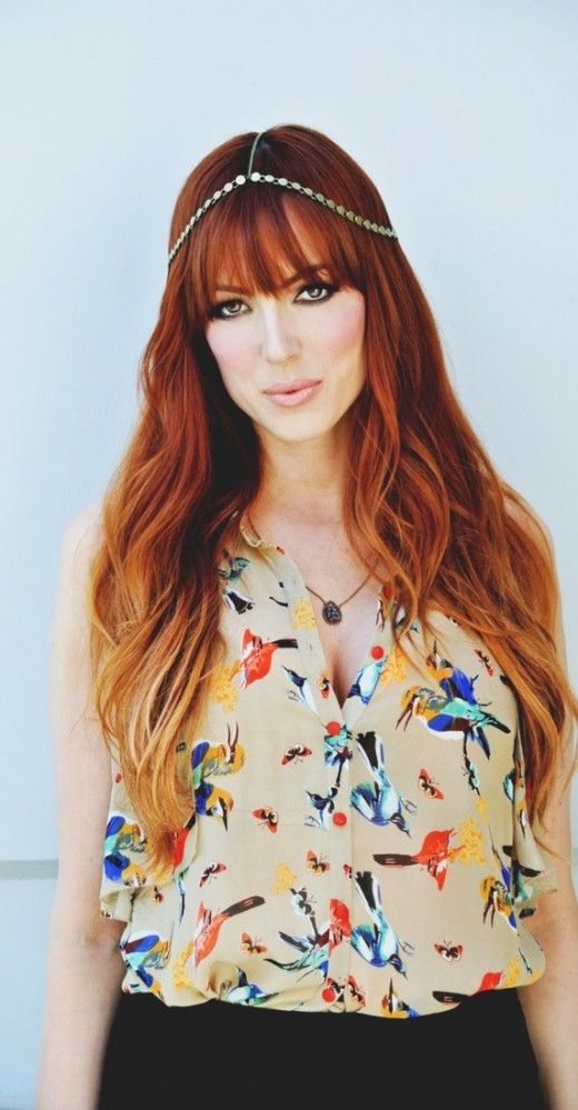 With western/casual clothes, I love the way its blow dried here. I would prefer doing the same..straight locks with in between subtle hints of highlights on the crown and from behind the neck. The auburn looks perfect with a brick red lipstick here.