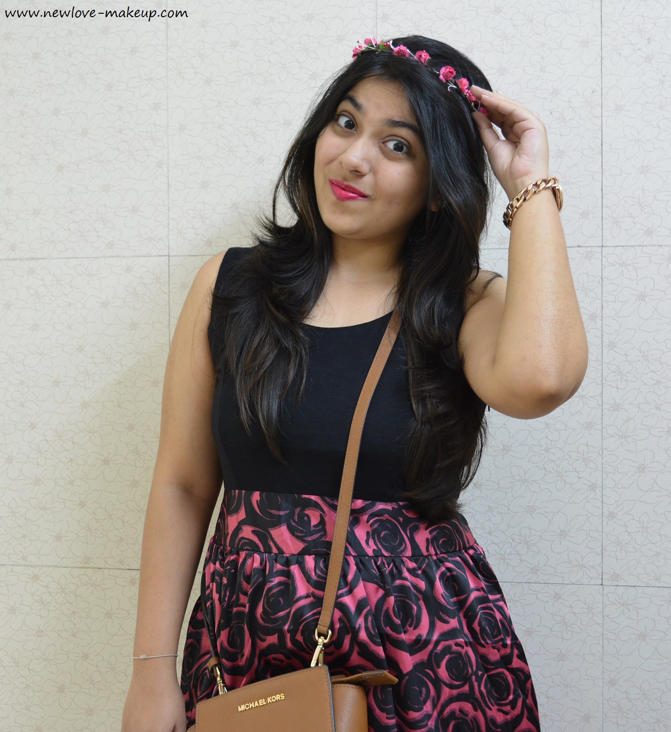 I am back with an OOTD, this time it’s this pretty black dress with pinkish red roses on the bottom half. It’s an old dress I had got from Done By None but never untill yet.