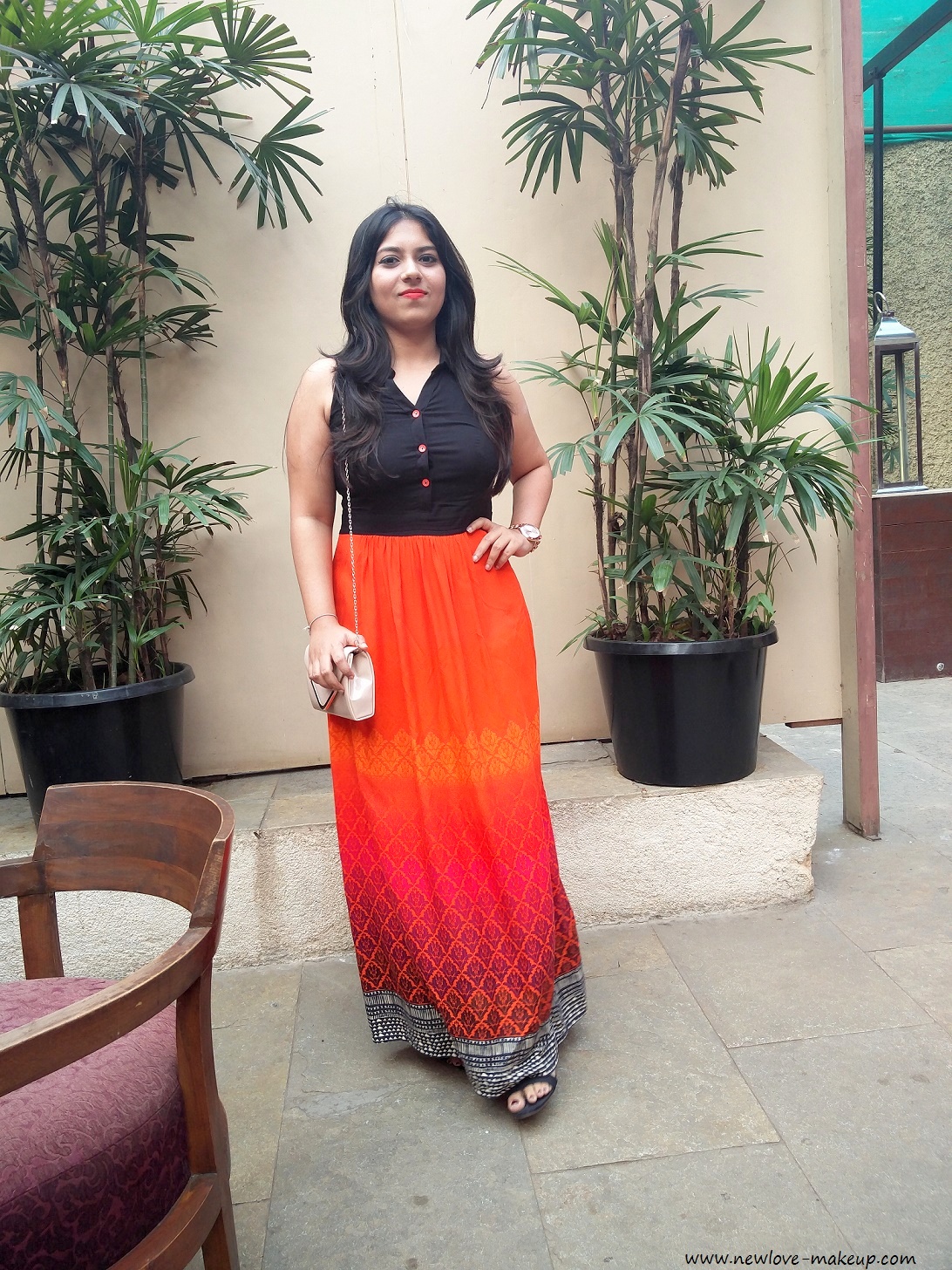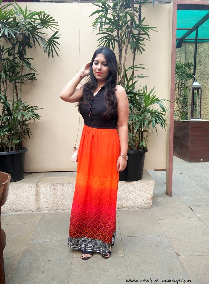 I bought this pretty black and orange maxi dress from Global Desi, there were just 3 options at Global Desi, 2 maxi dresses and 1 midi dress. Of which I liked this one the most.