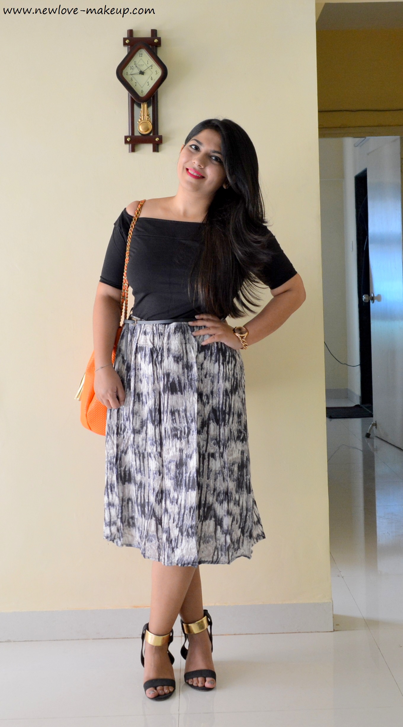 I chose this textured white boxy top with an embellished neckline with a simple black pencil skirt. I love the waffle print texture and the neckline is super pretty. You don’t need any additional accessories with this top. This top was priced at Rs. 799/- too.