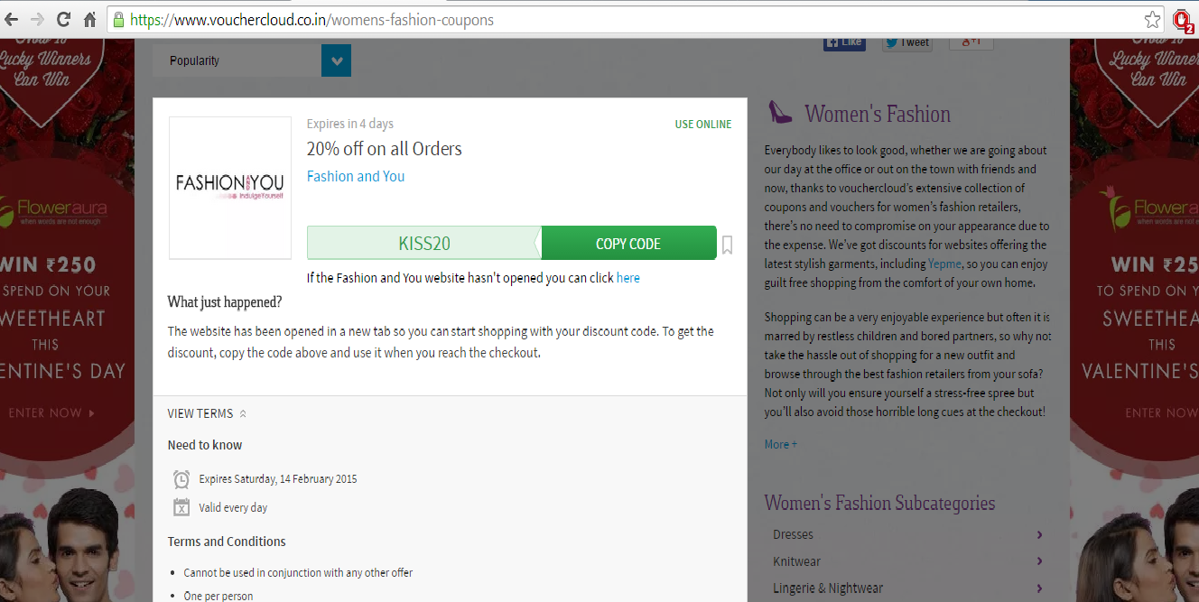 They had a 20% off on all orders on Fashionandyou.com coupon and that was over and above the discounts the website already had.