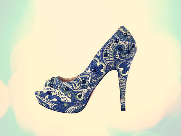 Open toed blue printed peep toes, they are studded with rhinestones and have a contoured footbed which makes it super comfortable to walk in. The front platform also gives support, so no more pain with heels! The print plus rhinestones give it a classy look and it would work with most of your Indian dresses and western wear.