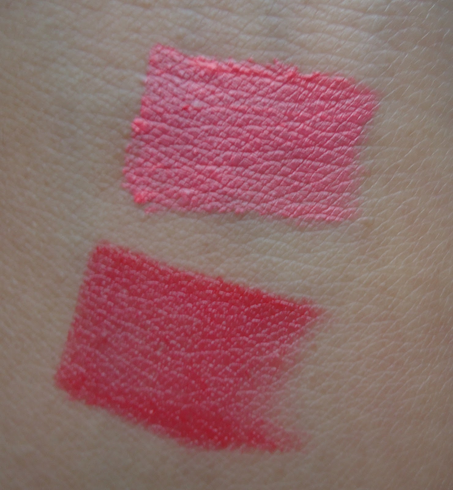 It looks like an orange based red in the tube..but its not as dark until layered up. A single swipe gives a hint of pinkish red tint on the lips.