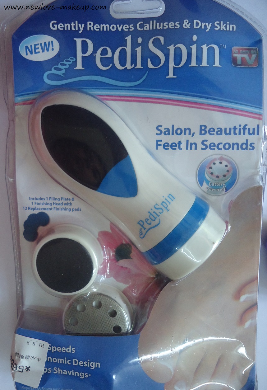 And last but not the least, a Pedi Spin. Its a handy tool for at- home pedicures, comes with a polishing and a finishing plate, and 12 extra polishing pads. I know Scholl has Express Smooth Velvet Pedi but this is like 1/6th the price :p