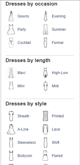 The website is very easy to navigate and the sub-categories within every category are very helpful. For e.g. within dresses, there are sub-categories i.e. dresses divided by occasion, length, style, colors, brands, sizes, patterns, price, shops, material, etc. This makes shortlisting dresses very easy & you can shop quickly as per your requirements.