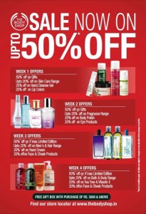 The Body Shop Sale upto 4 weeks !The Body Shop India has its weekly promotions going on..for the whole month.. The first week extends till 5th February..and these are the weekly discounts.. So..go and get your favorites..in the week they are on sale..:)