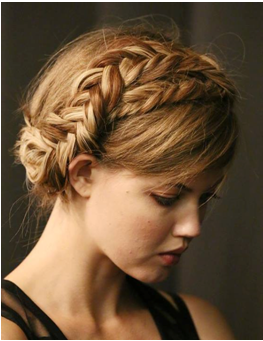 1.Use the TRESemmé Hairfall Defense Shampoo to wash your hair 2.Apply a generous amount of TRESemmé Hairfall Defense hair masque, distributing evenly from the mid-lengths to the ends 3.Blow dry hair to achieve smoother hair 4.Create a messy zig-zag side part, from the hairline to the center of the nape, and clip to separate these sections 5.From the heavier side of the parting, take another zig-zag section behind the ear and clip, to create three separate sections 6.Back brush hair for texture and create a ponytail from each of these sections and position them behind the ear 7.Tease lengths of hair and create a 4-strand braid with each ponytail and fasten with an elastic 8.Wrap braids around the top of the head, tucking the end of the braids under and fasten with bobby pins
