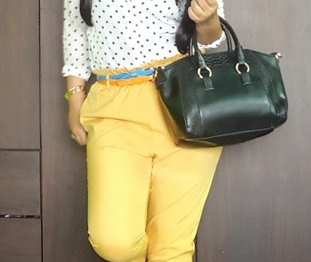 OOTD: Polka Dot Shirt, Mustard Yellow Harem Pants